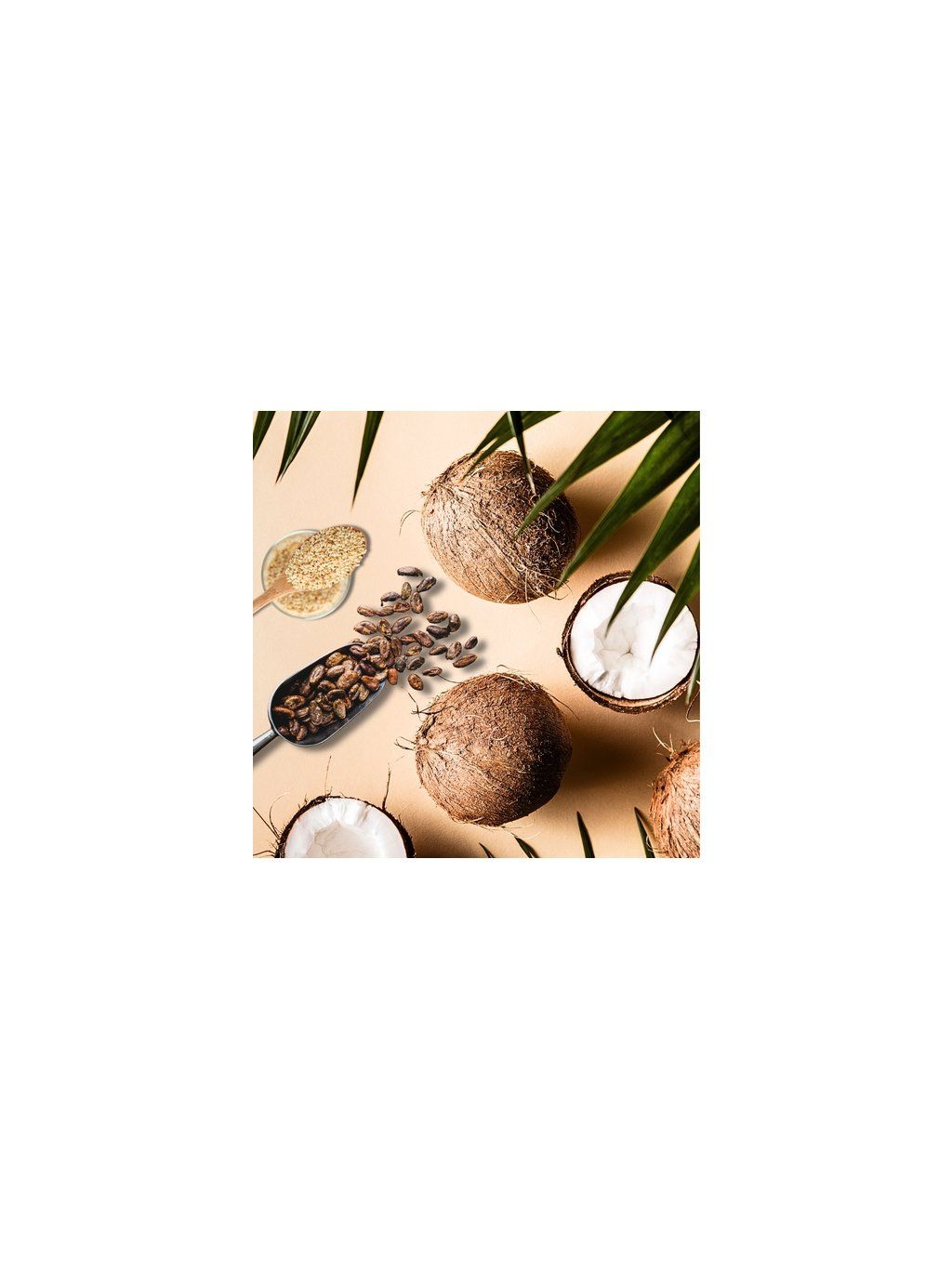 Základem krému je jemně mletá pasta z celé kokosové dužiny. Na rozdíl od kokosového oleje obsahuje vlákninu i přirozené živiny z kokosu a má plnou, přirozeně jemnou chuť. Kokos je v mnoha tropických zemích označován jako „strom života“, protože se využívá téměř celý a je ceněný pro svou výživovou hodnotu i všestranné využití.