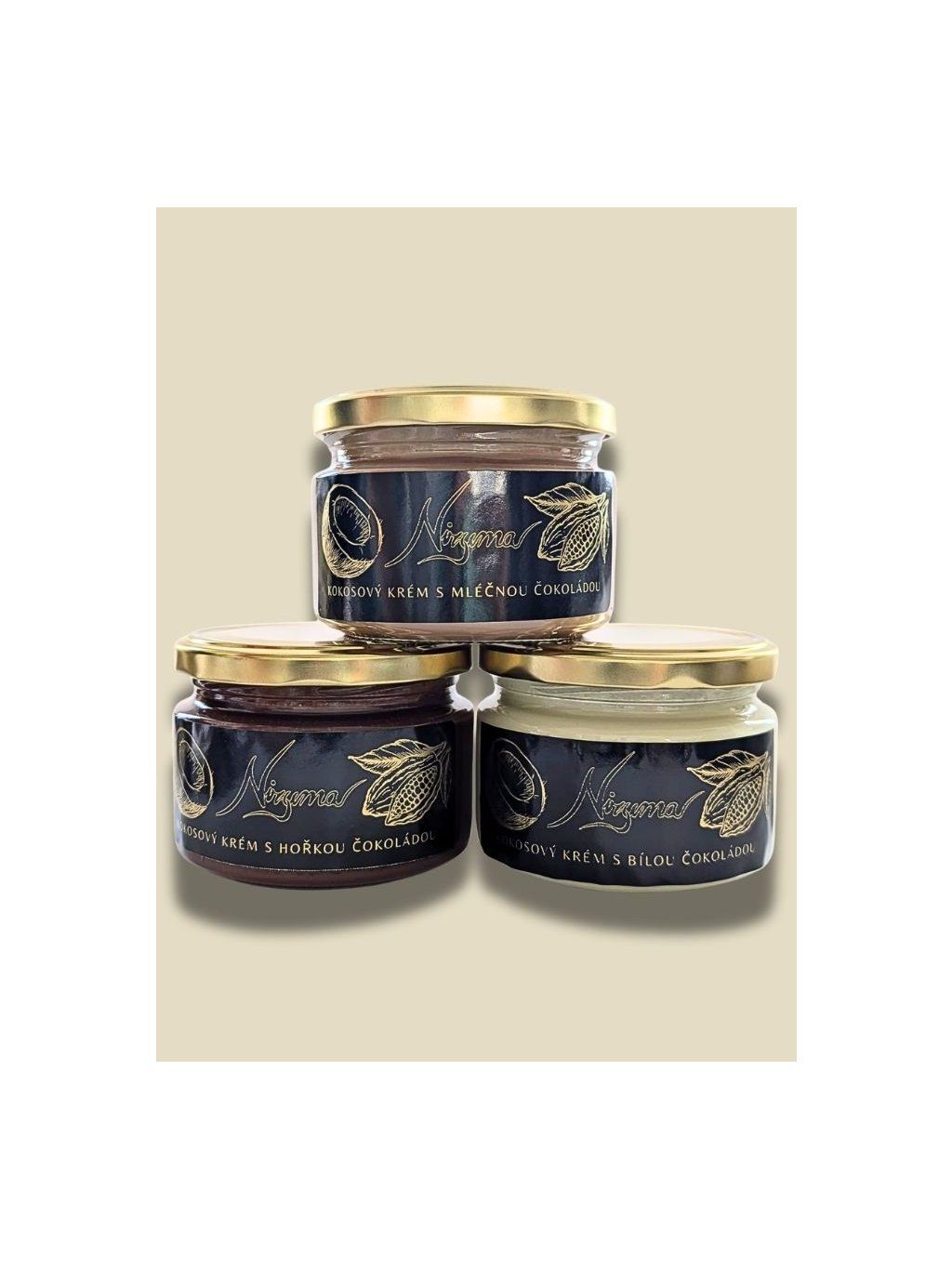 3x Kokosový krém s bílou,hořkou,mléčnou čokoládou 3x220g - řemeslný