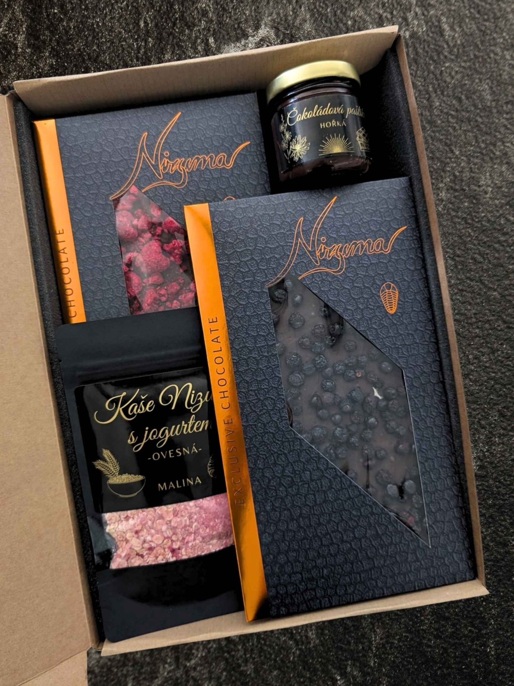 Dárkový box č.3 - 2x velká čokoláda, 1x čokoládová paštika, 1x kaše s jogurtem